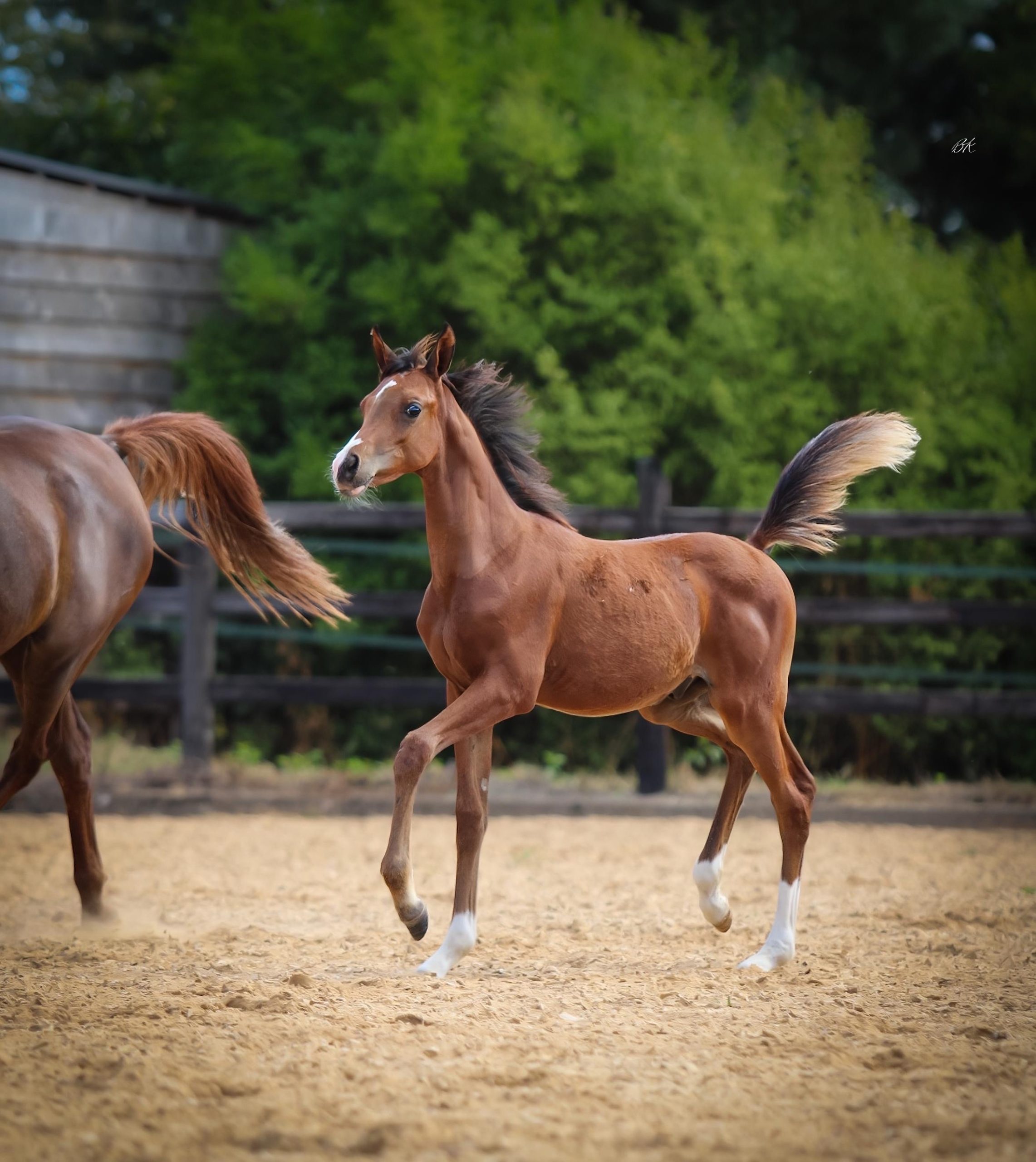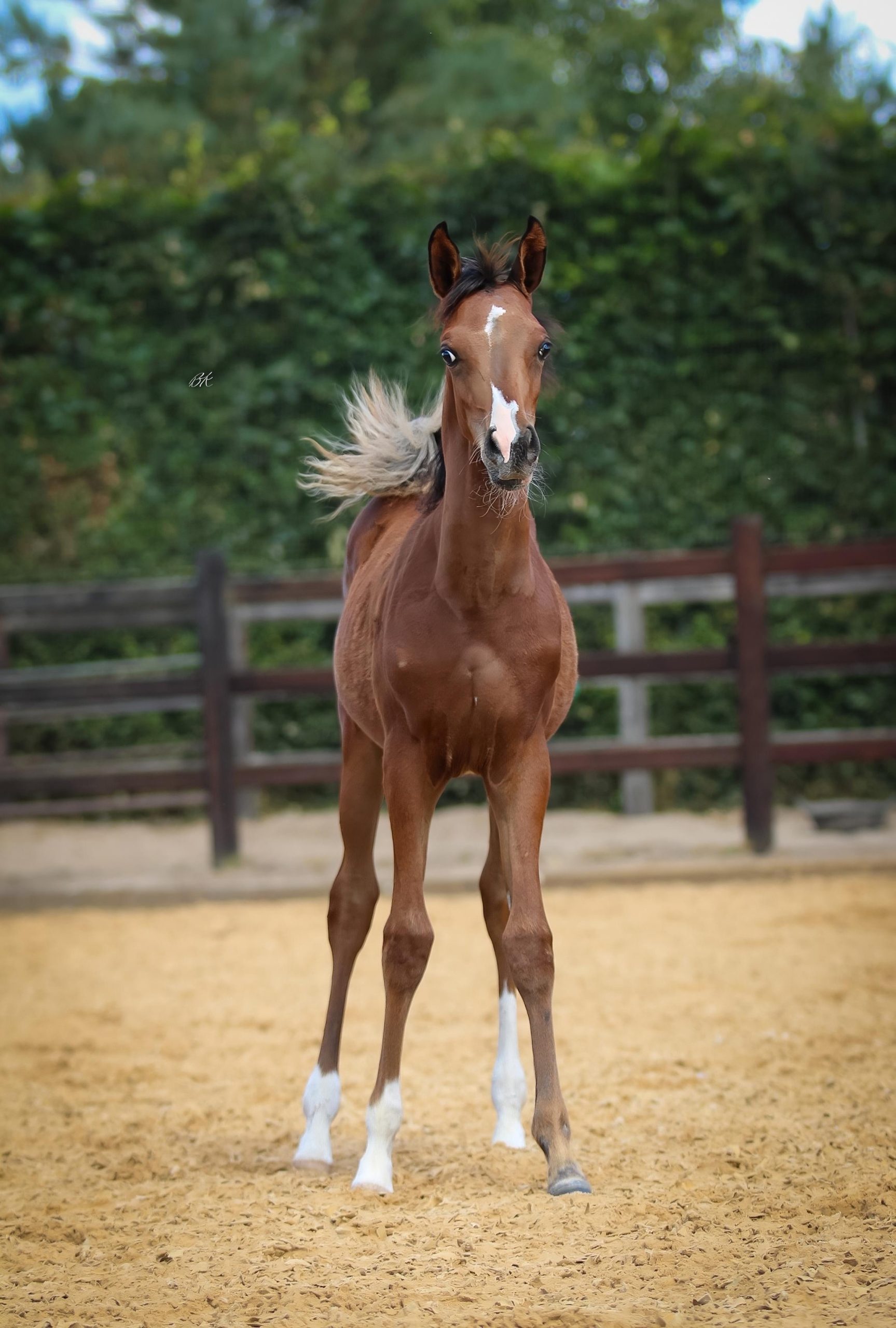 Farid is a beautifully bred 2025 colt with a balanced frame, correct legs, and an uphill, naturally “showy” posture. He shows a kind eye and quick intelligence, is people-oriented, and enjoys interaction—ideal traits for a future stallion prospect and a pleasure to bring along. His carriage and floating movement already reflect his heritage.